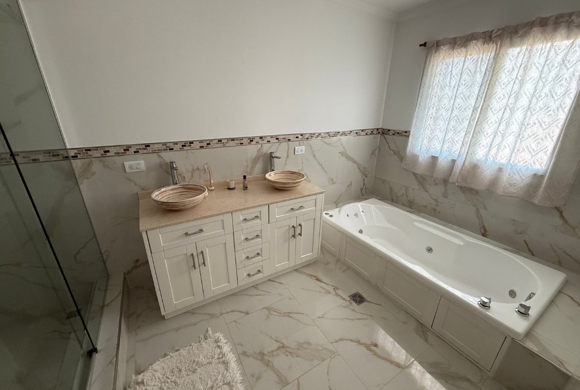 - En planta alta: Suite principal con vestidor, antebaño y un baño completo que incluye ducha y una bañera con hidromasaje. Además, una habitación secundaria con altillo.