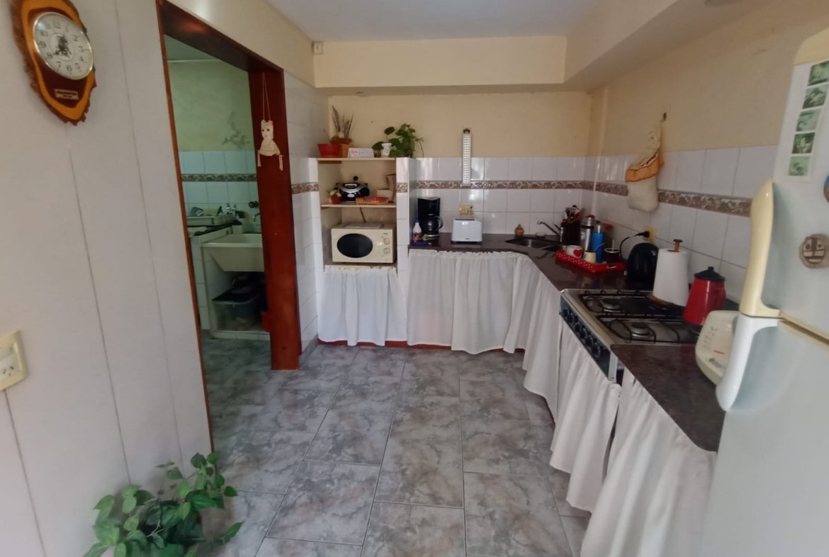 La casa cuenta con una cocina práctica, un comedor amplio, un baño completo y 3 habitaciones. También posee entrada para auto cubierta y un pequeño patio. Cuenta con todos los servicios.